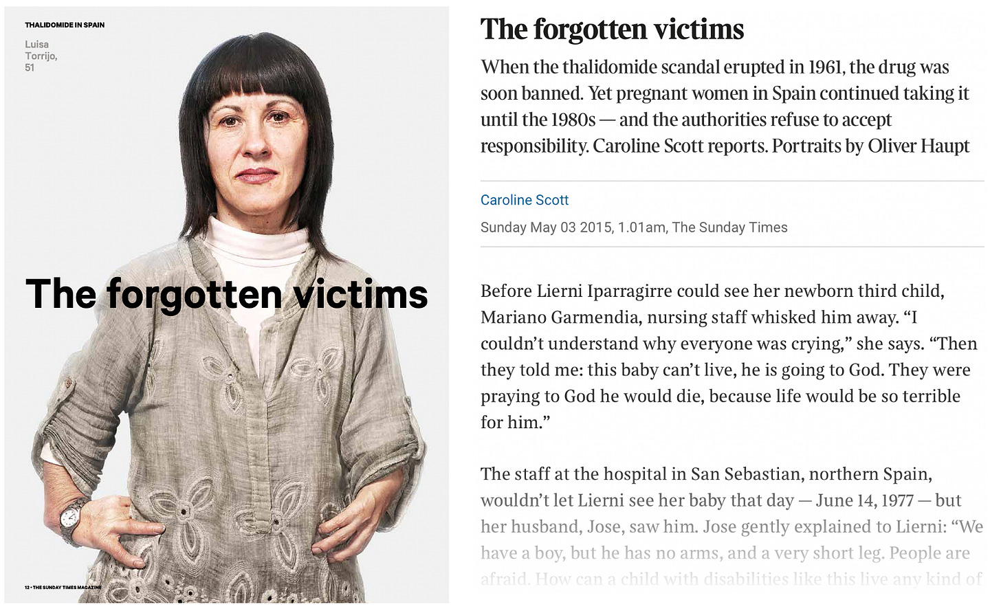 I am reminded of this 2015 Sunday Times article (link — the original Sunday Times article is behind a paywall) which notes that, “When the thalidomide scandal erupted in 1961, the drug was soon banned. Yet pregnant women in Spain continued taking it until the 1980s — and the authorities refuse to accept responsibility”: