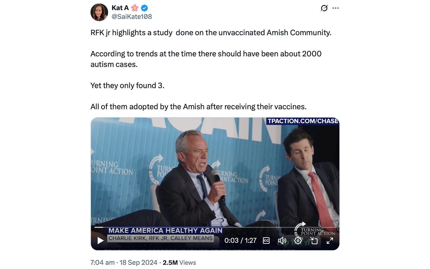 And… if [that area] was following the national trend… there should have been about 2,000 autism cases. And they were able to find three. And all of them were children who had been adopted by the Amish after receiving their vaccines. Of the Amish in general, they could not find any [autism].