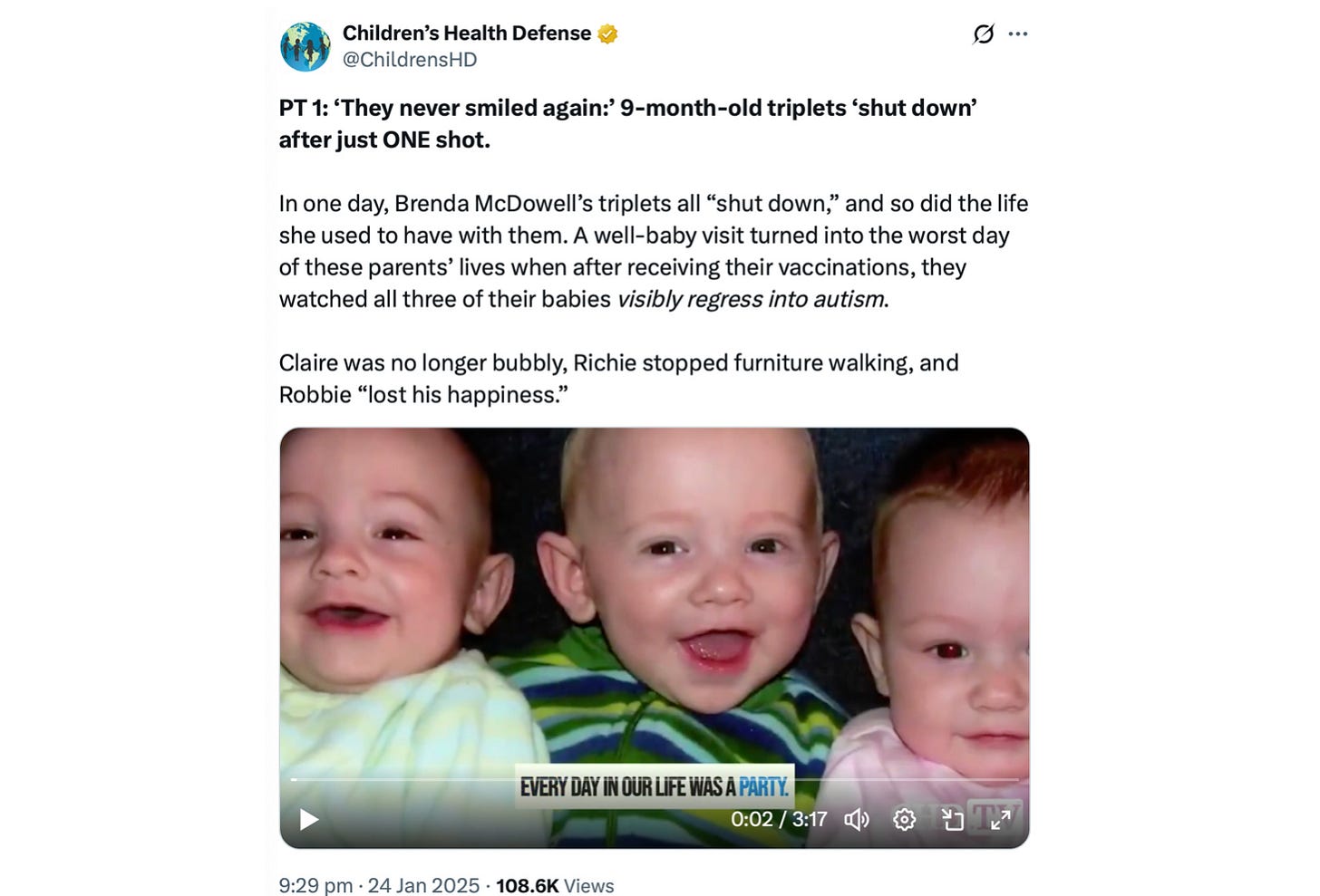 So what is the evidence — if any — that a vaccine… some specific vaccine causes autism. And is the NIH and CDC and the new administration going to take a serious second look at this?