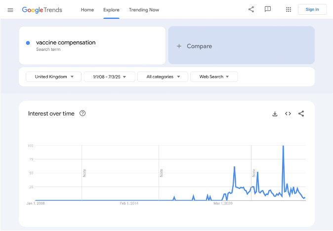 I am also reminded of GoogleTrends searches (for the UK) such as these: