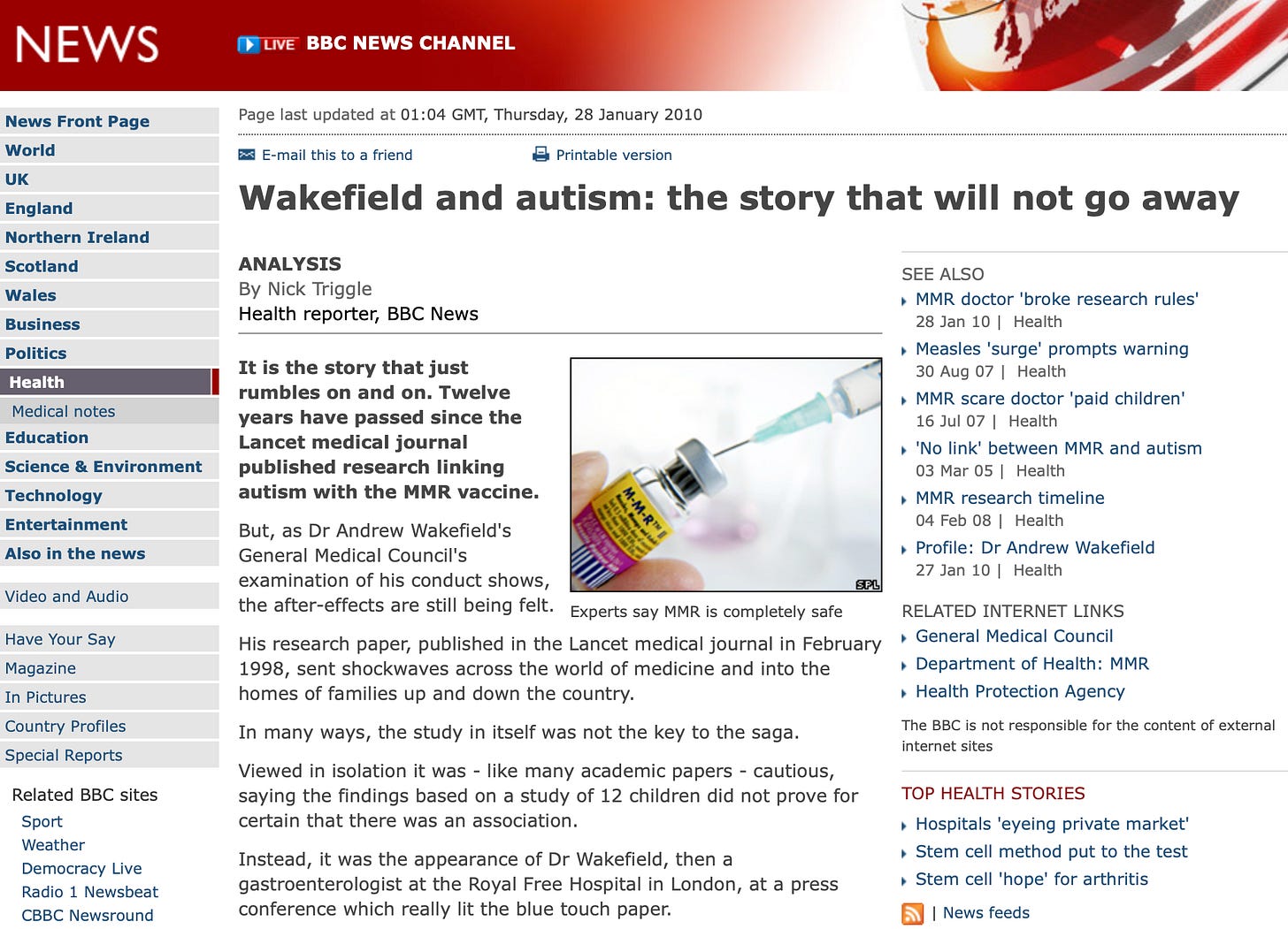 And here is an interview from around the same time where Wakefield puts his side of the story: