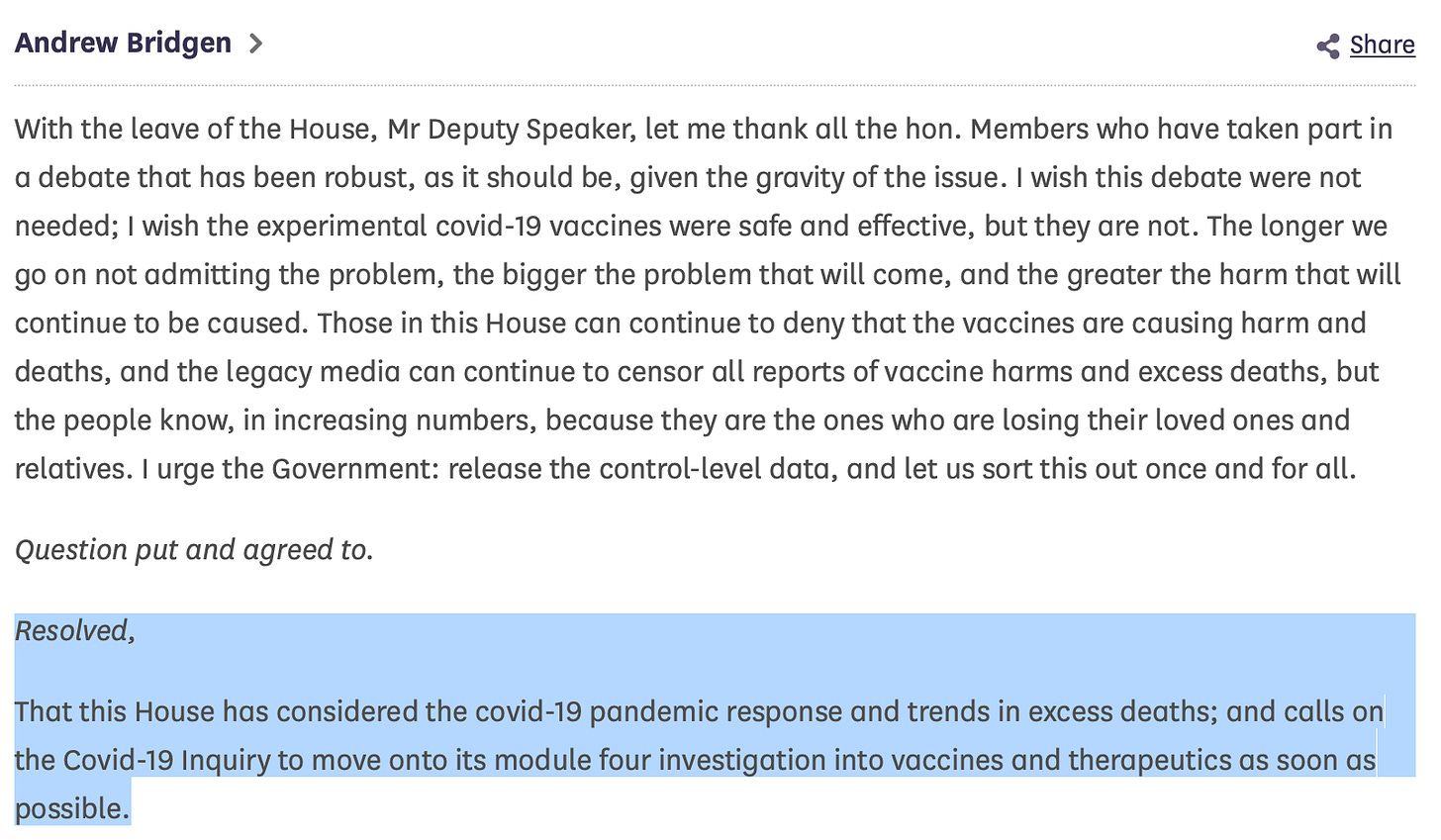 Moreover, nothing has changed despite a motion being passed on 18th April in the House of Commons calling on the Inquiry to move onto Module 4 without delay to investigate the safety and efficacy of the covid vaccines: