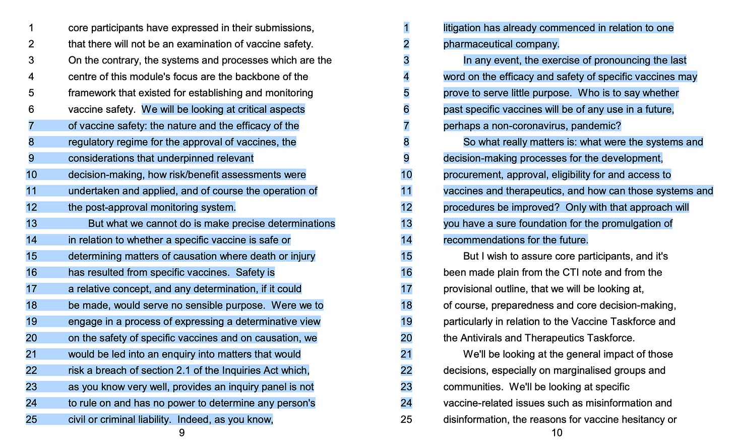 Moreover, according to pages 9 and 10 of this statement made at the UK Covid Inquiry on 22nd May, it does not appear that much consideration will be given to the safety and efficacy of covid vaccines in any case: