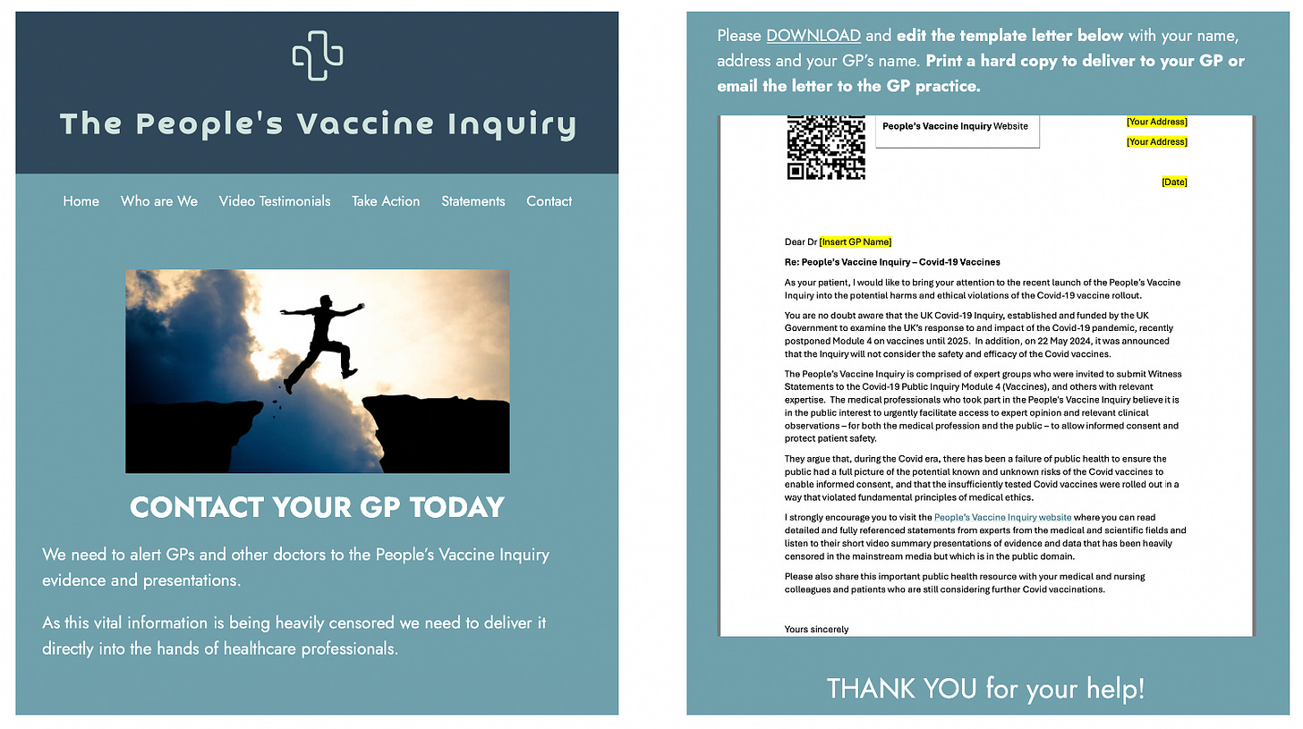 Because covid vaccine-related information is still heavily censored, The People’s Vaccine Inquiry team is urging supporters to contact their local GPs to alert them to what is happening: