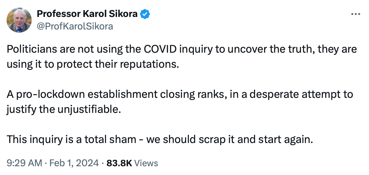 While the Scottish covid inquiry appears to be doing a fairly good job of finding out what actually happened — and I recommend checking out some of the testimony at that link1 — it seems to me that the UK covid inquiry will be worse than useless.